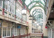 Grudgingly, and with bad grace, the Council began the long process of providing a water supply, drainage system, burial grounds and waste disposal facilities. The Courts began to be tackled, and it was their thin, linear form that would set the template for the arcades to come, since this was the piecemeal way the land was sold. The Cardiff Arcade Company, encouraged by the thriving Church Street Arcade, was formed by a group of landowners to try to replicate its success. They acquired and cleared the cottages of Tabernacle Court and Colliers Arms Court and hired architect Peter Price (c1815-c1890) to design the Royal Arcade. It was completed in 1858 and boasted an Italianate frontage with twin pedimented gables at the St Mary Street end and panelled chambers on its upper level. The trademark eclecticism of Cardiff’s arcades was established by the sheer variety of the first set of occupants. Hatters, hosiers, milliners, ironmongers, tobacconists, gunmakers, engravers, watchmakers, jewellers, wine merchants and confectioners were there, as well as one-offs like John Cording, taxidermist, William Bibbings, china dealer, and Asher Finkelstone, toys and fancy goods. None of those original businesses are in the Royal Arcade 150 years later, but some of the Victorian store-fronts have been preserved, the St Mary Street entrance survives and the slight kink in the Arcade’s course is a ghostly remnant of the boundary between the two Courts it replaced.